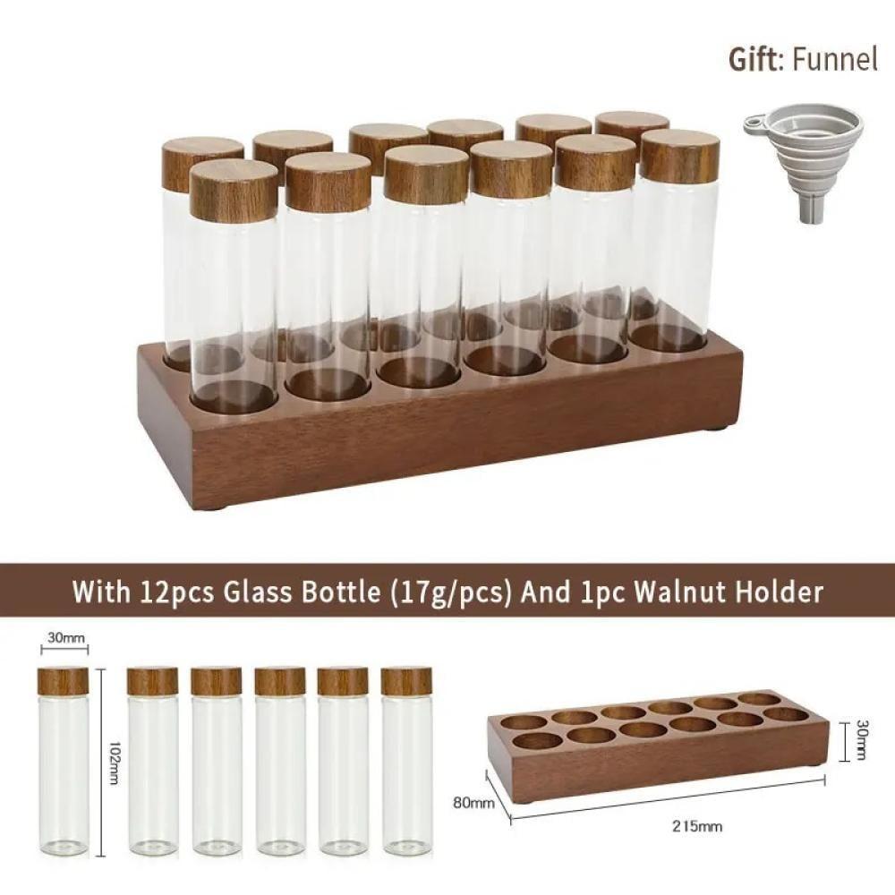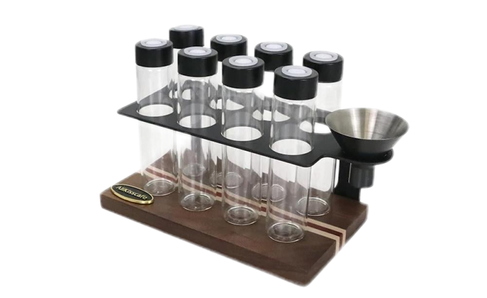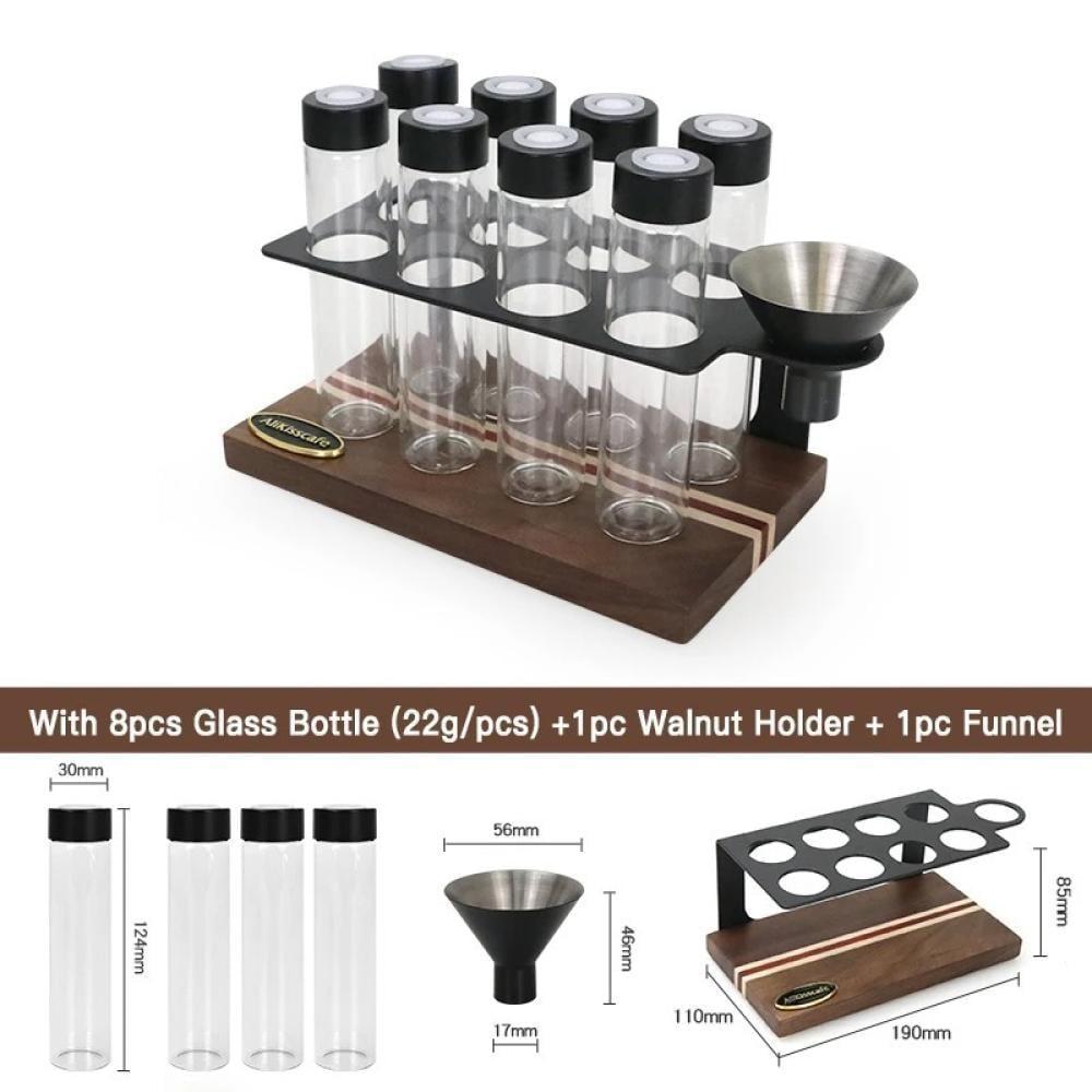 أنابيب تخزين حبوب القهوة مع صمام عادم للحفاظ على النكهة والانتعاش، مصممة لجرعة واحدة بسعة 17 جم - 22 جم. تأتي مع رف عرض أنيق وقمع لتسهيل الاستخدام. مثالية لمحترفي القهوة والمقاهي، وتضيف لمسة فنية وعملية لمساحة التحضير.