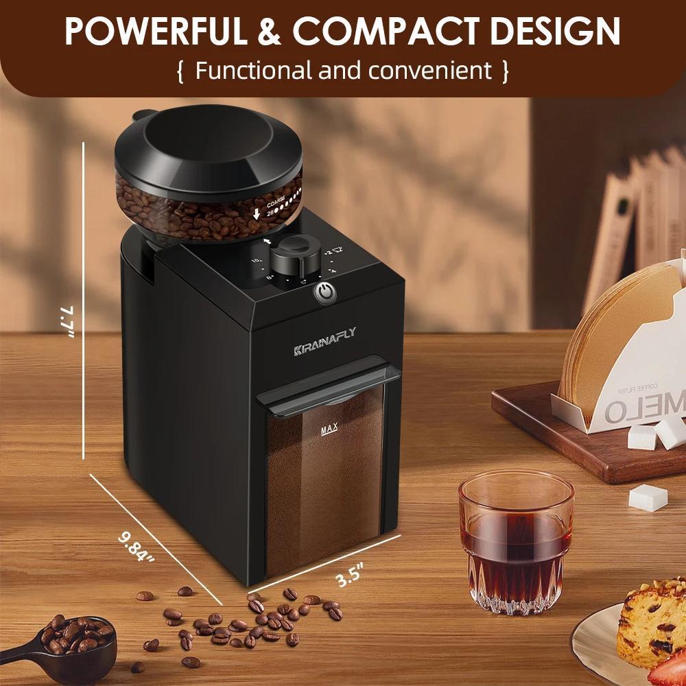 مطحنة قهوة أوتوماتيكية مع 28 ترس قابل للتعديل، توفر طحن دقيق ومثالي لجميع أساليب تحضير القهوة مثل اسبريسو، الضغط الفرنسي، والتقطير. تصميم كهربائي لسهولة استخدام، لضمان طعم قهوة طازجة ومميزة في كل مرة.